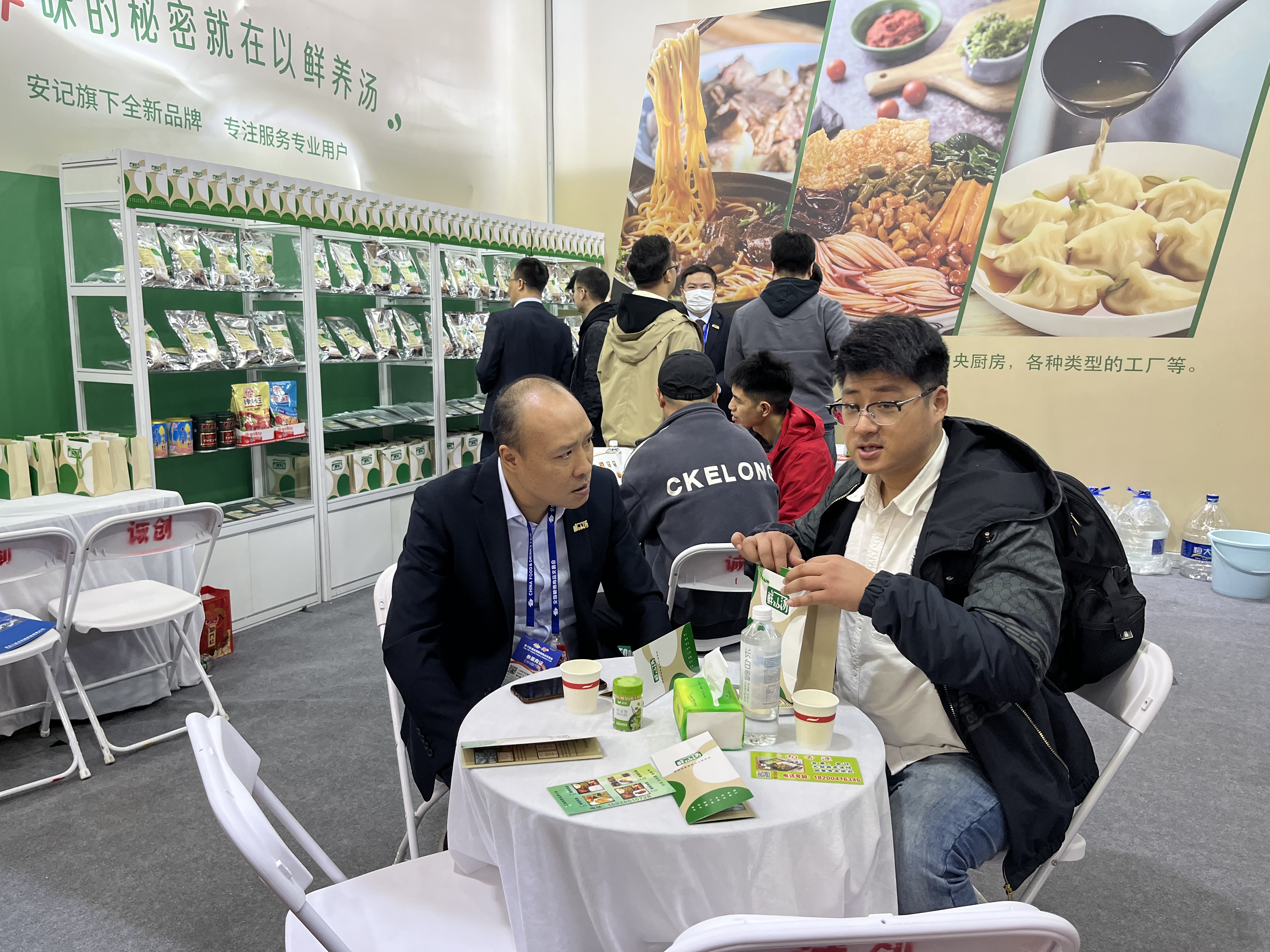 展會開始,安記生物團隊成員以最佳的精神風貌迎接觀展客戶。試吃組井然有序地派發試吃品螺螄粉,讓觀展商以最直接的形式了解我們的產品、風味;客戶招待組則負責介紹產品,溝通客戶需求,讓更多伙伴了解“鮮以湯“品牌,與意向客戶建立友好關系。